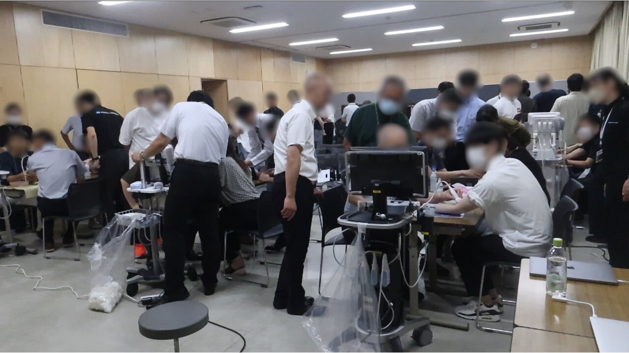 ハンズオンセミナーでは、超音波ガイド下静脈穿刺を中心に実技指導を行い、全7セッション中、最多の40名を超える参加者を集めるなど、大盛況となりました。